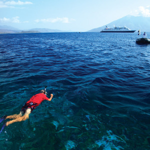 In early 2015, the recently unveiled 338-foot expedition cruise ship National Geographic Orion will set sail for a number of remarkable destinations. The 102-passenger ship is equipped with scuba gear, kayaks, and a state-of-the-art remotely operated vehicle that can reach depths of 1,000 feet.